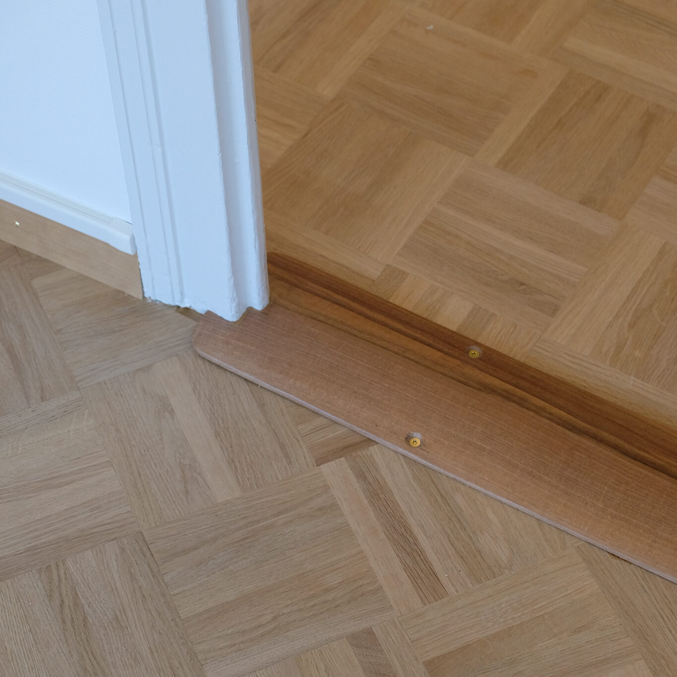 Parquet en chêne mosaique et seuil en noyer d’originie.